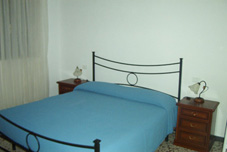 Chambre double d'environ 15 mq. avec le lit en fer, armoire, petits tables in bois et le plafond avec poutres en bois. |